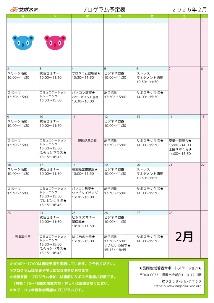 プログラム予定表 2024.03.222026.01.16 プログラム予定表 202601Pダウンロード 202512Pダウンロード 202511Pダウンロード 202510Pダウンロード 202509Pダウンロード 202508Pダウンロード 202507Pダウンロード 202506Pダウンロード 202505Pダウンロード 202504Pダウンロード