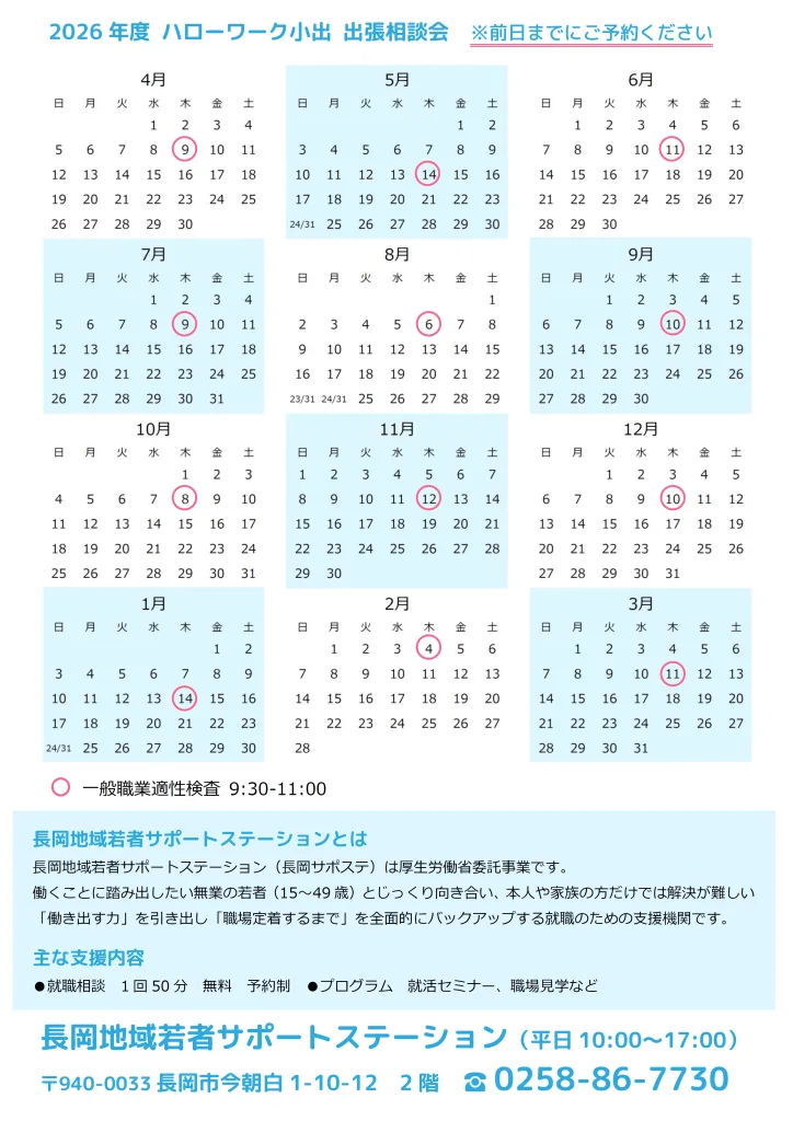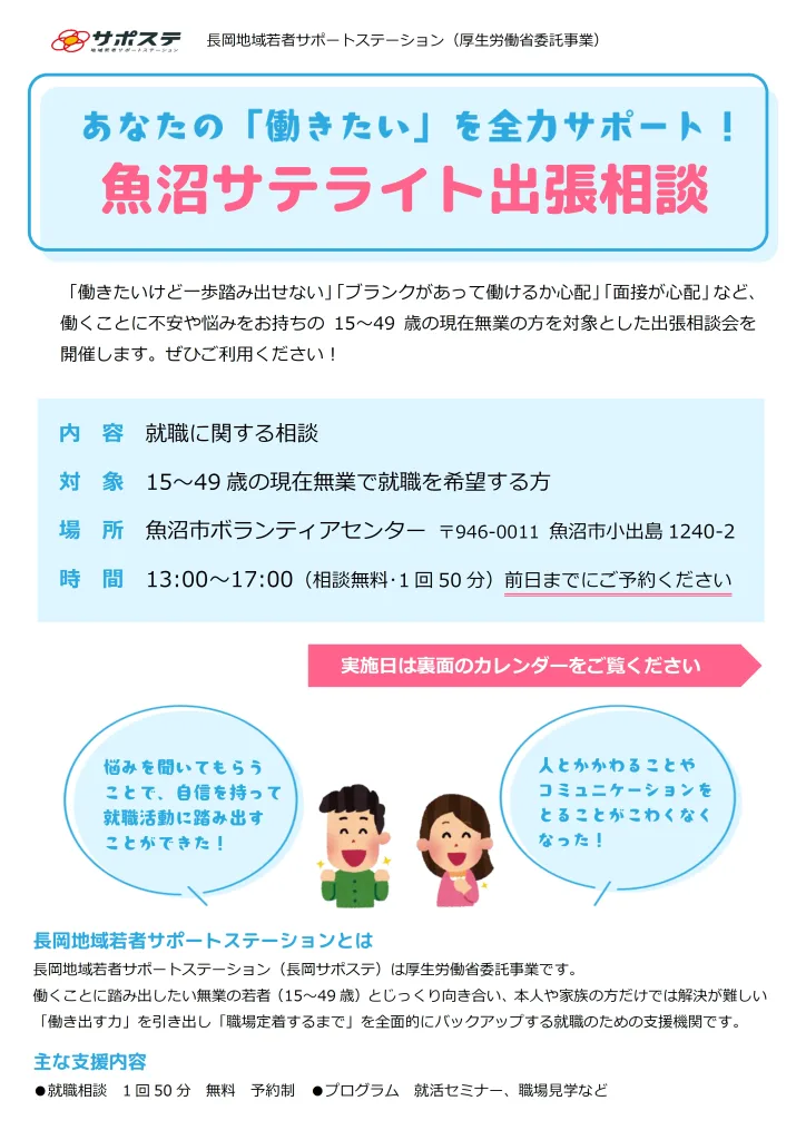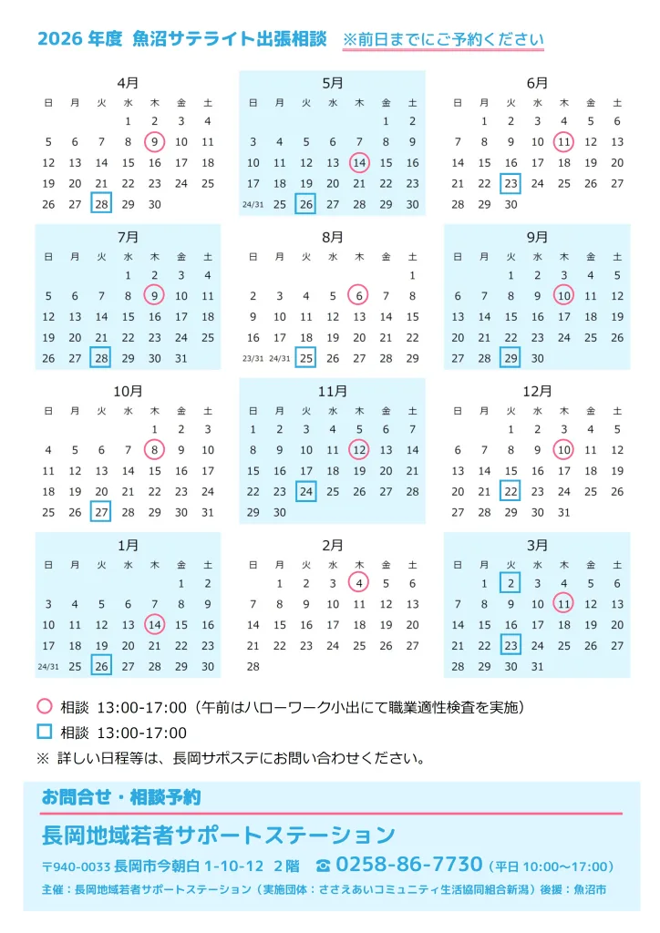 ハローワーク小出・魚沼サテライト出張相談 2024.03.232026.04.14 ハローワーク小出・魚沼サテライト出張相談 2026年度ハローワーク小出出張相談ダウンロード 2026年度魚沼サテライト出張相談ダウンロード