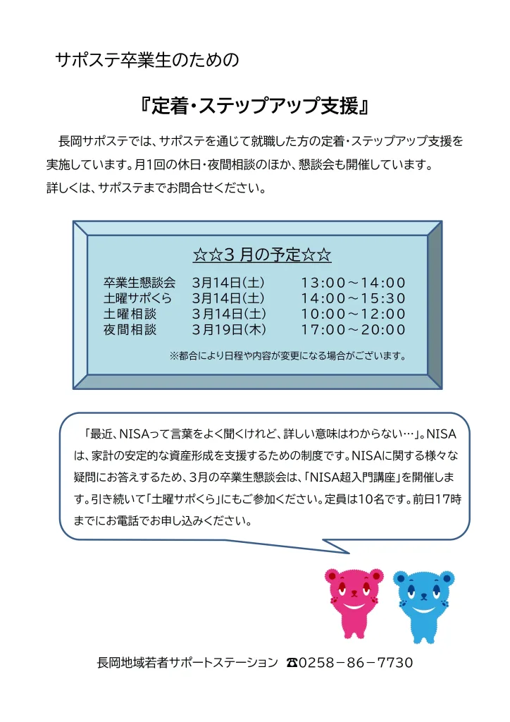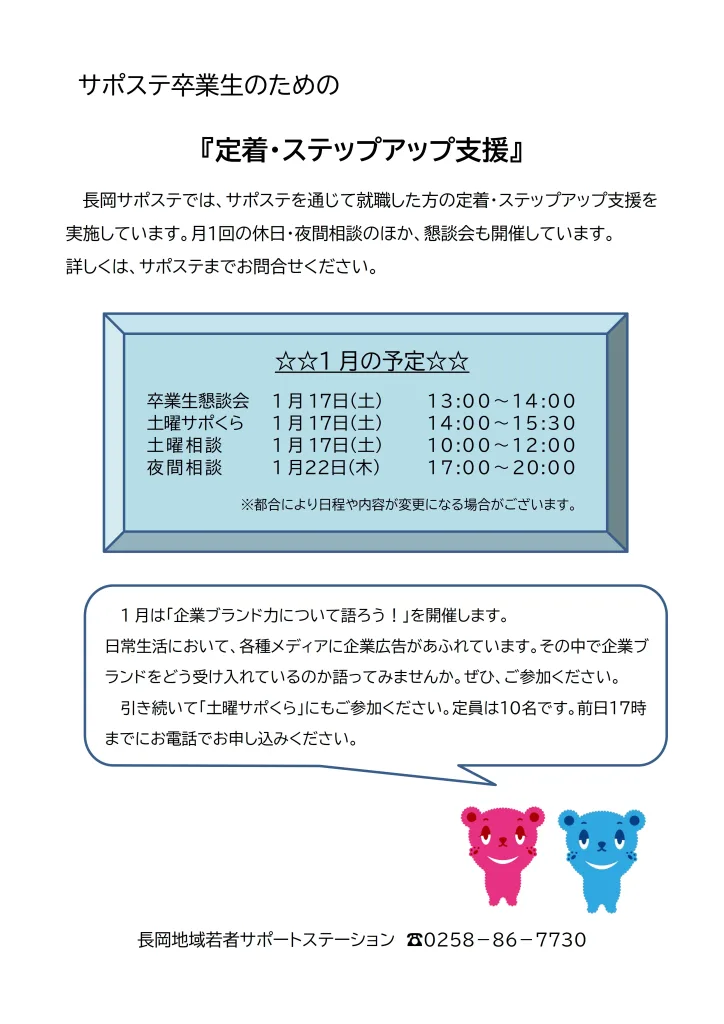 定着ステップアップ支援予定表 2024.05.242025.12.18 定着ステップアップ支援予定表 2025年10月から、夜間相談の日程が 毎月第3木曜日 に変わりました!ご利用の際はお間違えのないようご注意ください SU202512ダウンロード SU202601ダウンロード SU202511ダウンロード SU202510ダウンロード SU202509ダウンロード SU202508ダウンロード SU202507ダウンロード SU202506ダウンロード SU202505ダウンロード SU202504ダウンロード