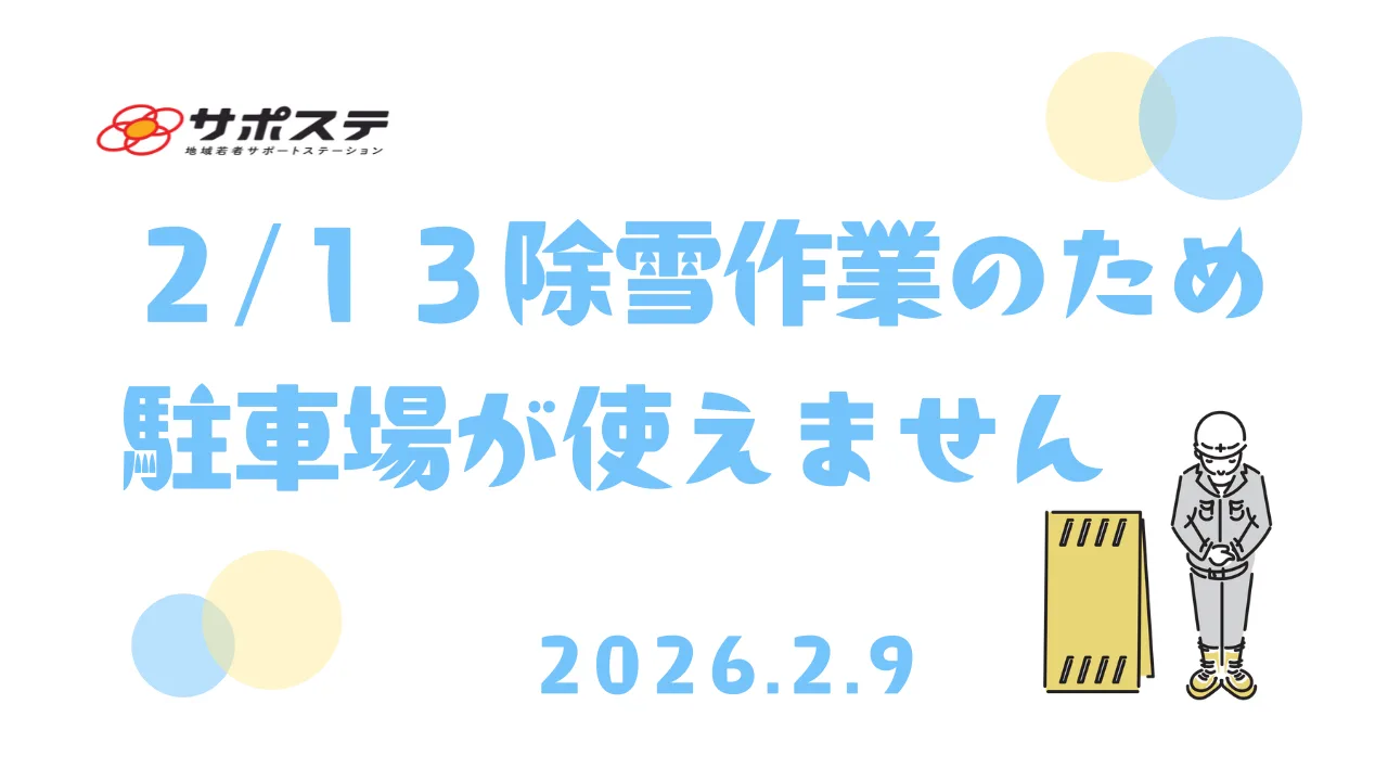 【重要】2月13日(金)除雪作業に伴う駐車場利用停止のお知らせ
